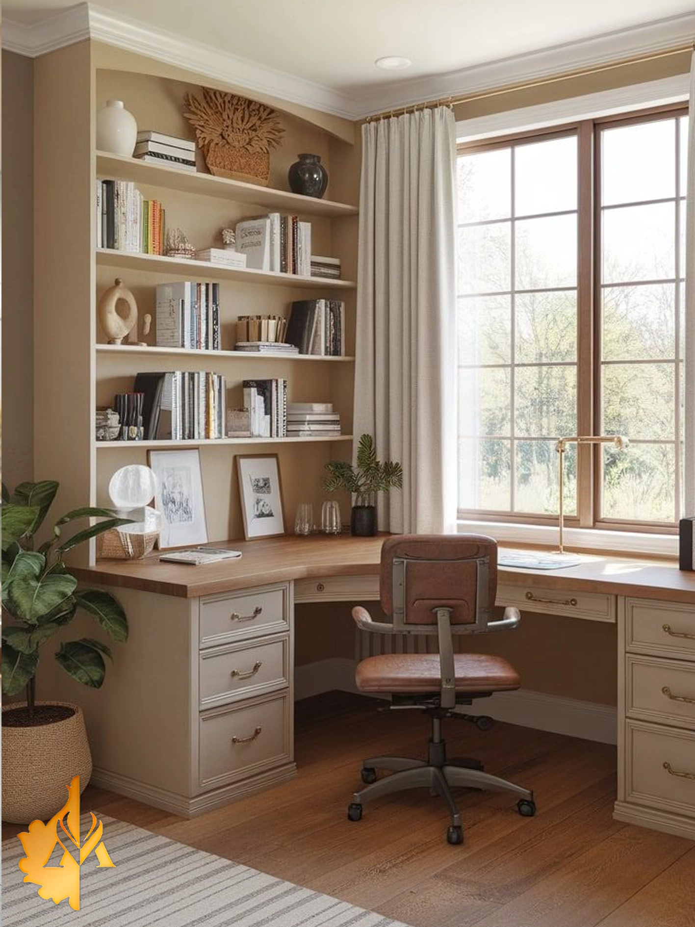 - میز کار کنار پنجره نور طبیعی تمرکز و انرژی رو بالا میبره؛ انتخاب عالی برای فضاهای کاری خانگی.