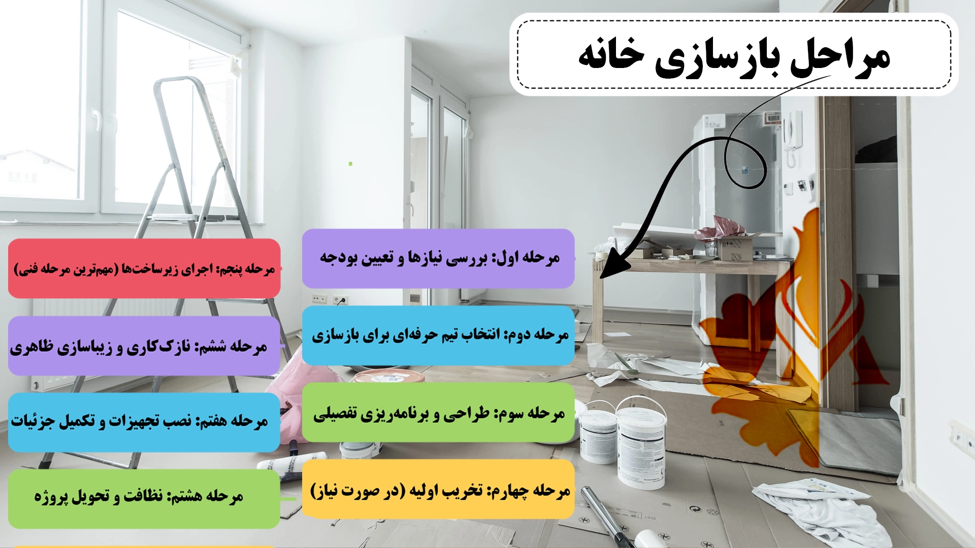 در این بخش به تمام مراحل بازسازی خانه از ارزیابی نیازها تا تحویل نهایی میپردازیم.