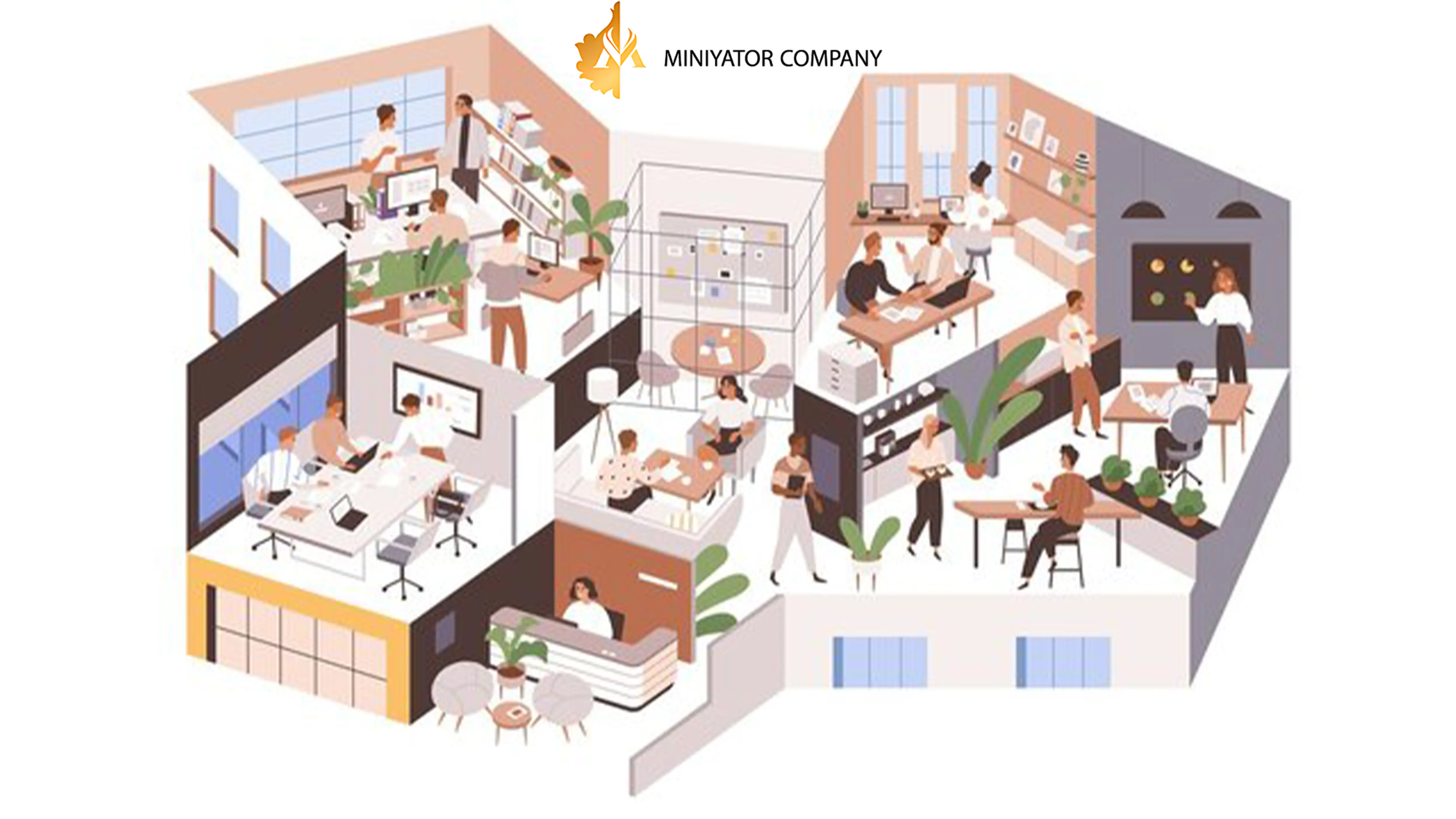 - تدوین سلسله مراتب فضایی: فضاهای مختلف چگونه باید به هم مرتبط شوند؟ (فضای پذیرش، فضای کار فردی، اتاق جلسات، فضای استراحت، آشپزخانه و...)