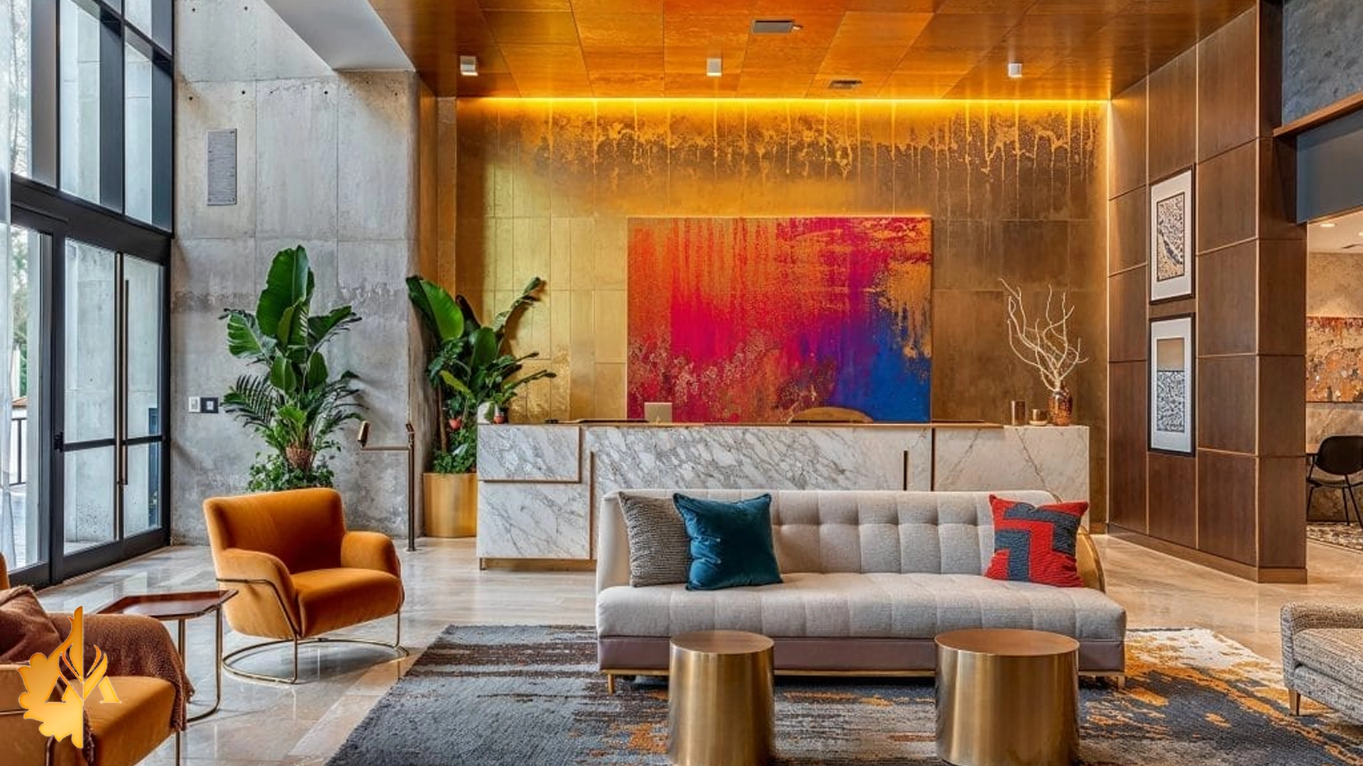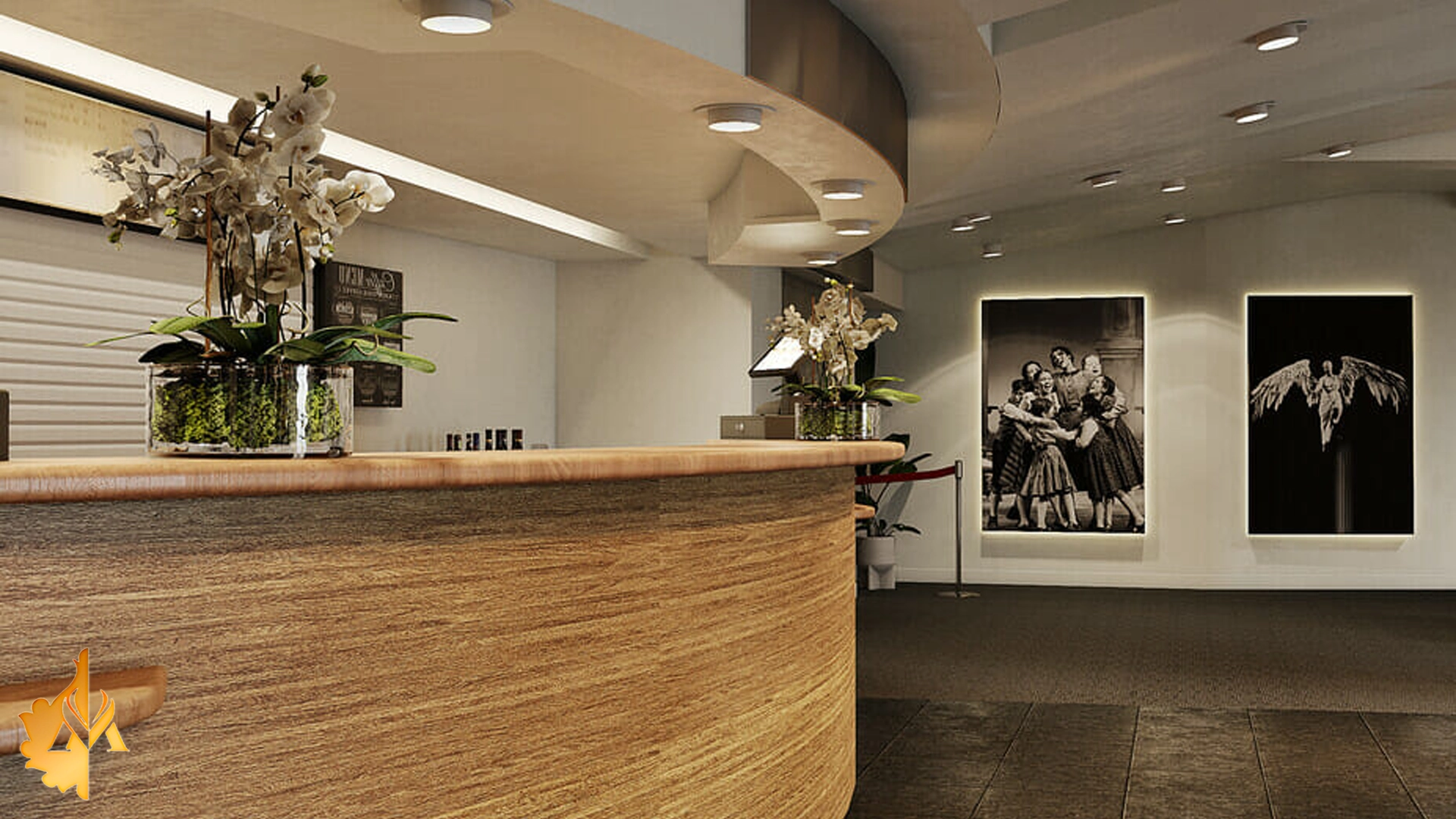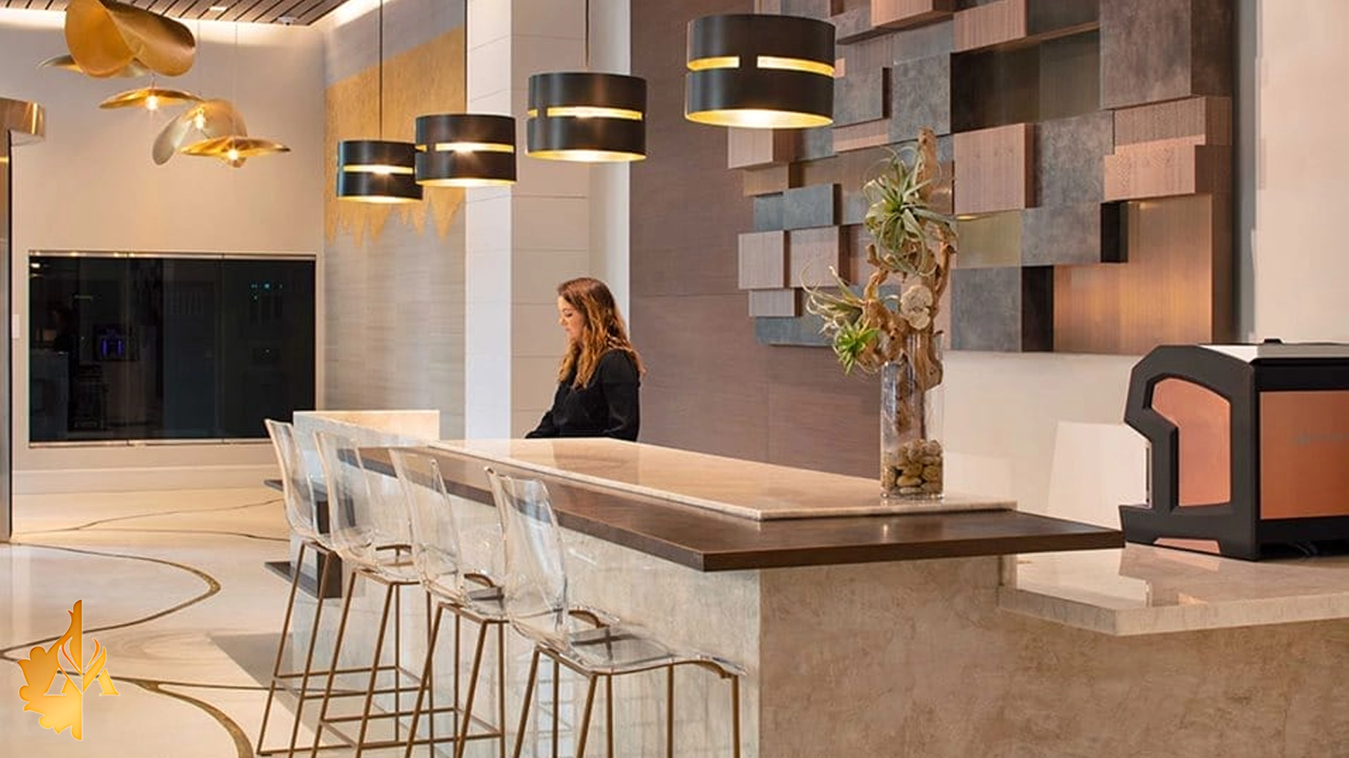 مبلمان و عناصر دکوراتیو با دقت و حداقل تعداد انتخاب شدهاند. فرمها سادهاند و رنگها در هماهنگی کامل با پالت کلی فضا قرار دارند. هیچ عنصری برای پر کردن فضا اضافه نشده و هر جزئیات، نقشی مشخص در تجربه کاربر دارد. این رویکرد باعث شده لابی نه خالی به نظر برسد و نه شلوغ؛ تعادلی که دستیابی به آن، نیازمند کنترل و دقت بالا در طراحی است.
