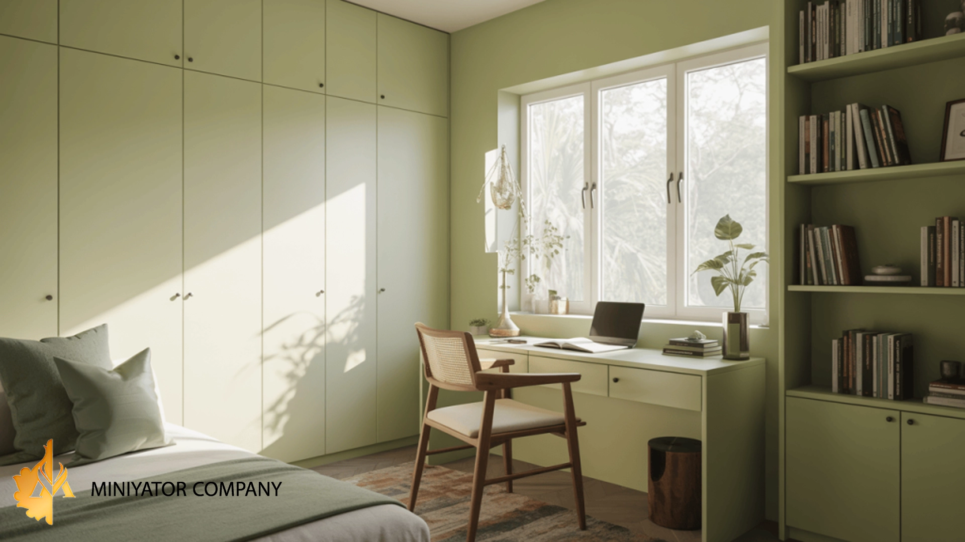 سبز زیتونی حس ثبات و تمرکز ایجاد میکند و کرم پسزمینهای آرام و خنثی فراهم میکند. این ترکیب خستگی ذهنی را کاهش داده و فضایی مناسب مطالعه و کار میسازد.