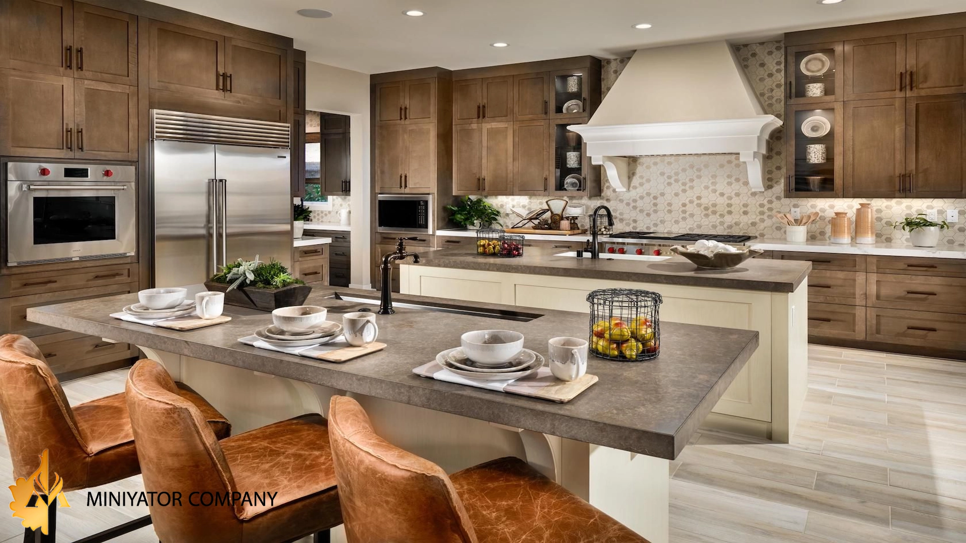 - آشپزخونه بزرگه؟ جزیره انتخاب خفنیه، چون هم شیکه هم میتونه کلی کار بکنه.